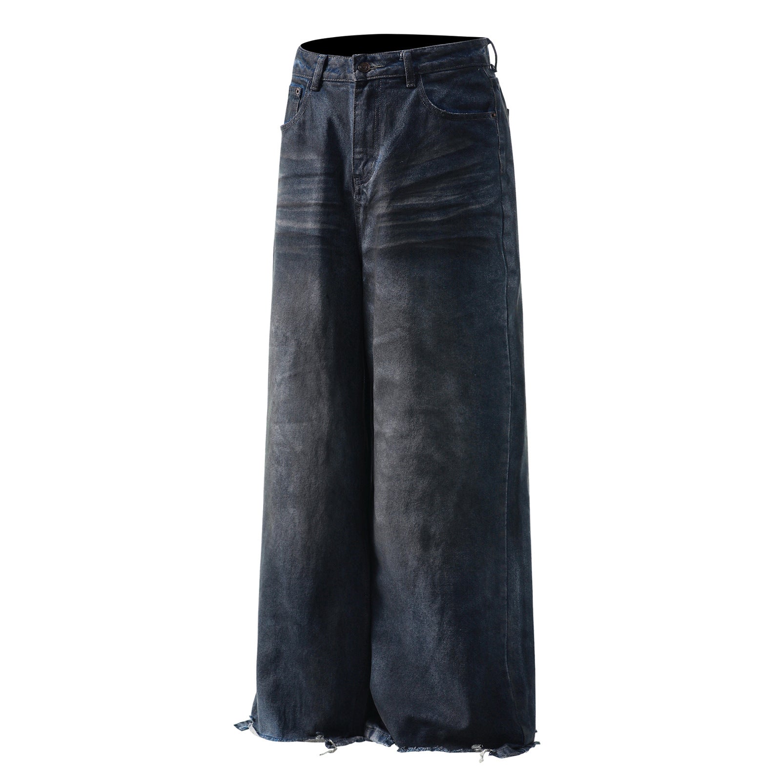 Washed Denim Pants - Straight Wide Leg Trousers