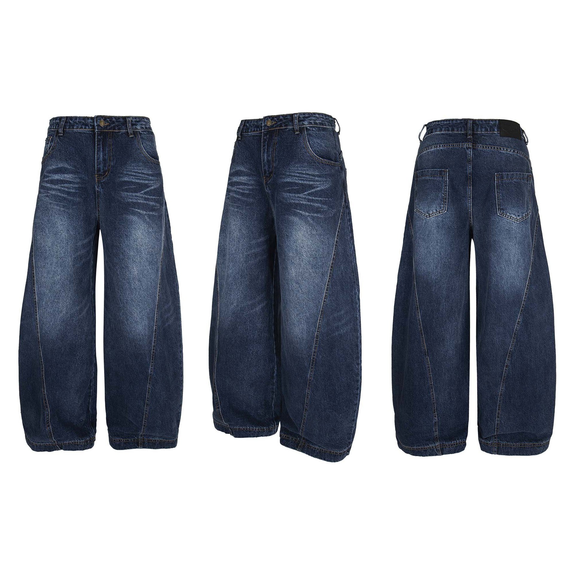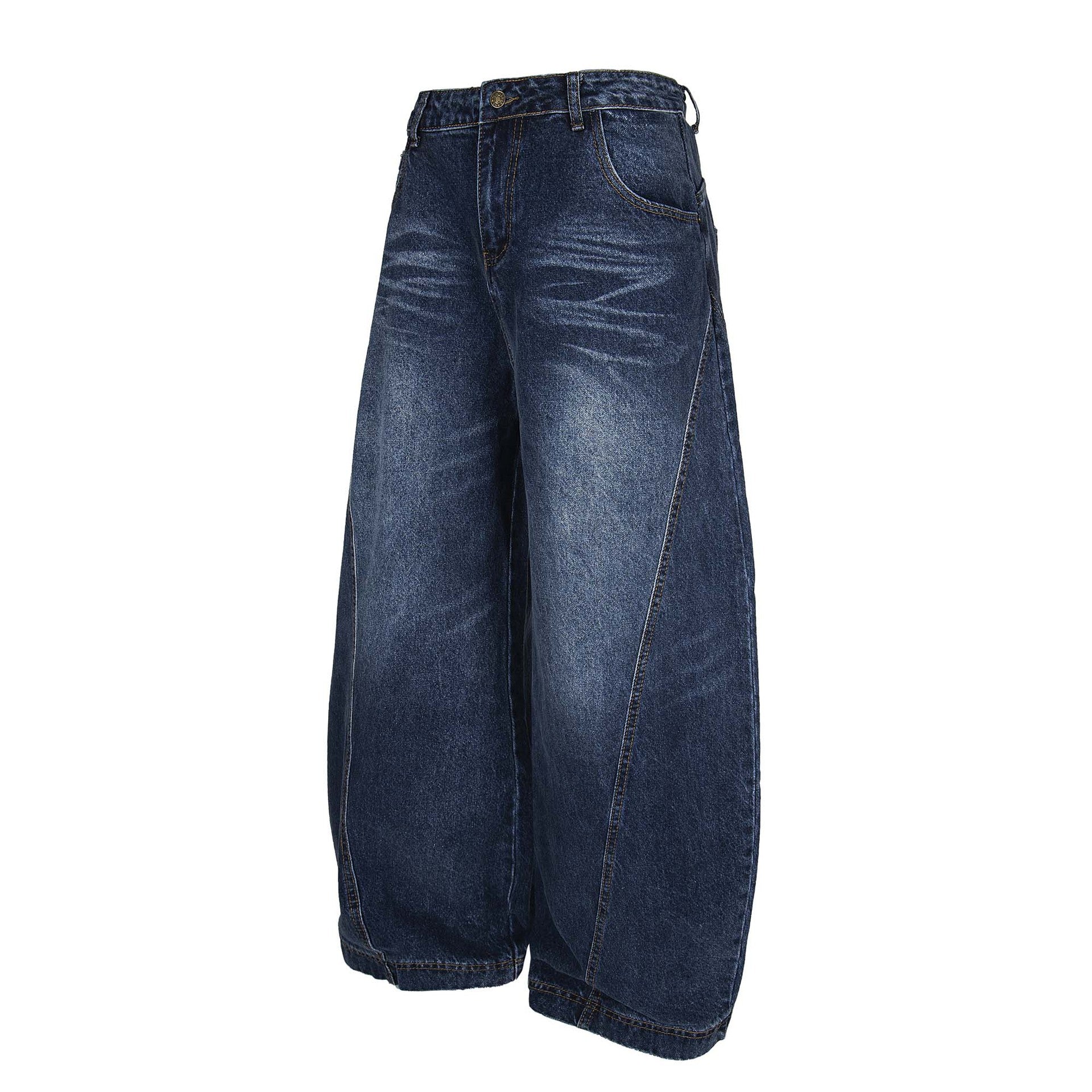 Washed Distressed Patchwork Tapered Pants - Unisex Loose Wide Leg Jeans