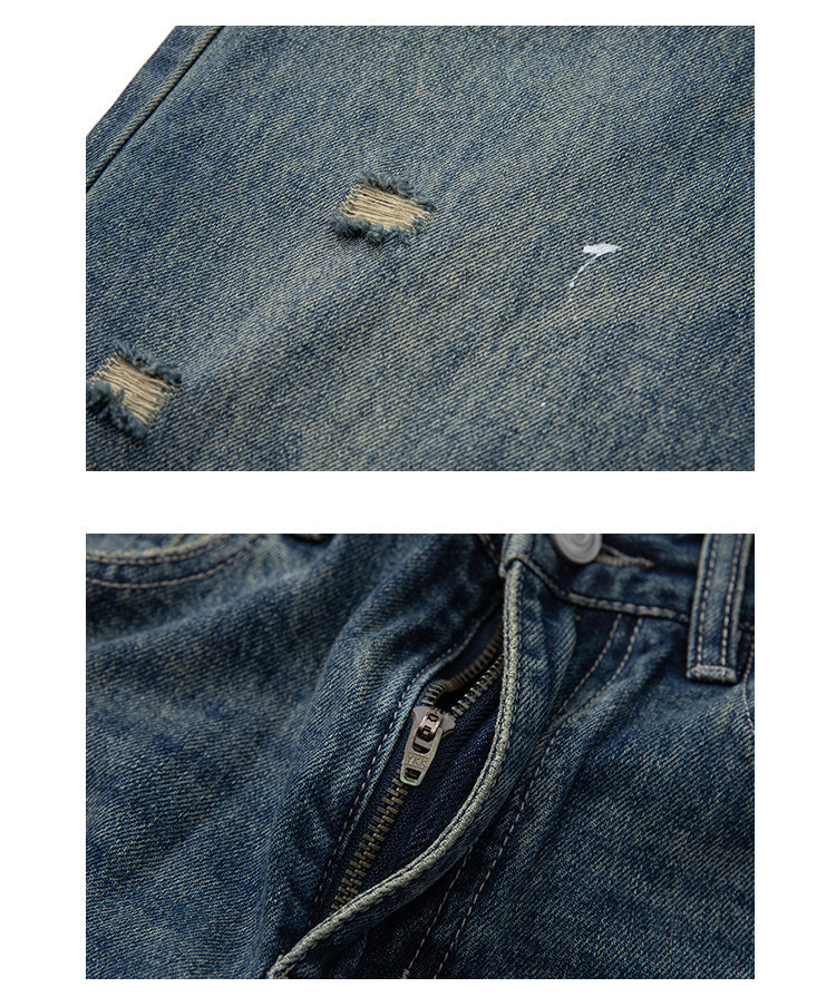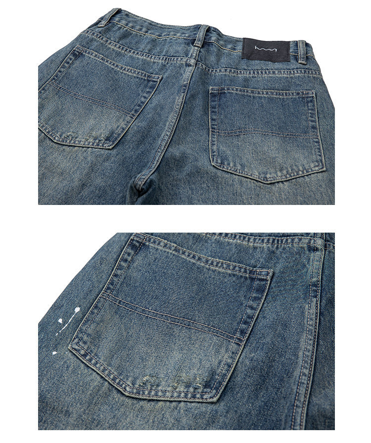 Experience the perfect blend of modern design and traditional craftsmanship with these Washed Paint Splatter Patch Hole Catwhisker Straight Leg Jeans for Men. Made from premium Japanese denim, these jeans are not just a fashion statement but a testament to durability and style.