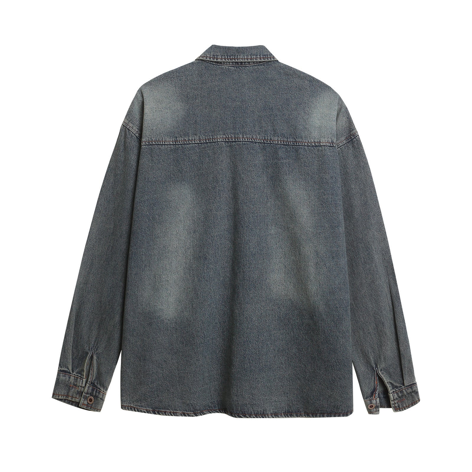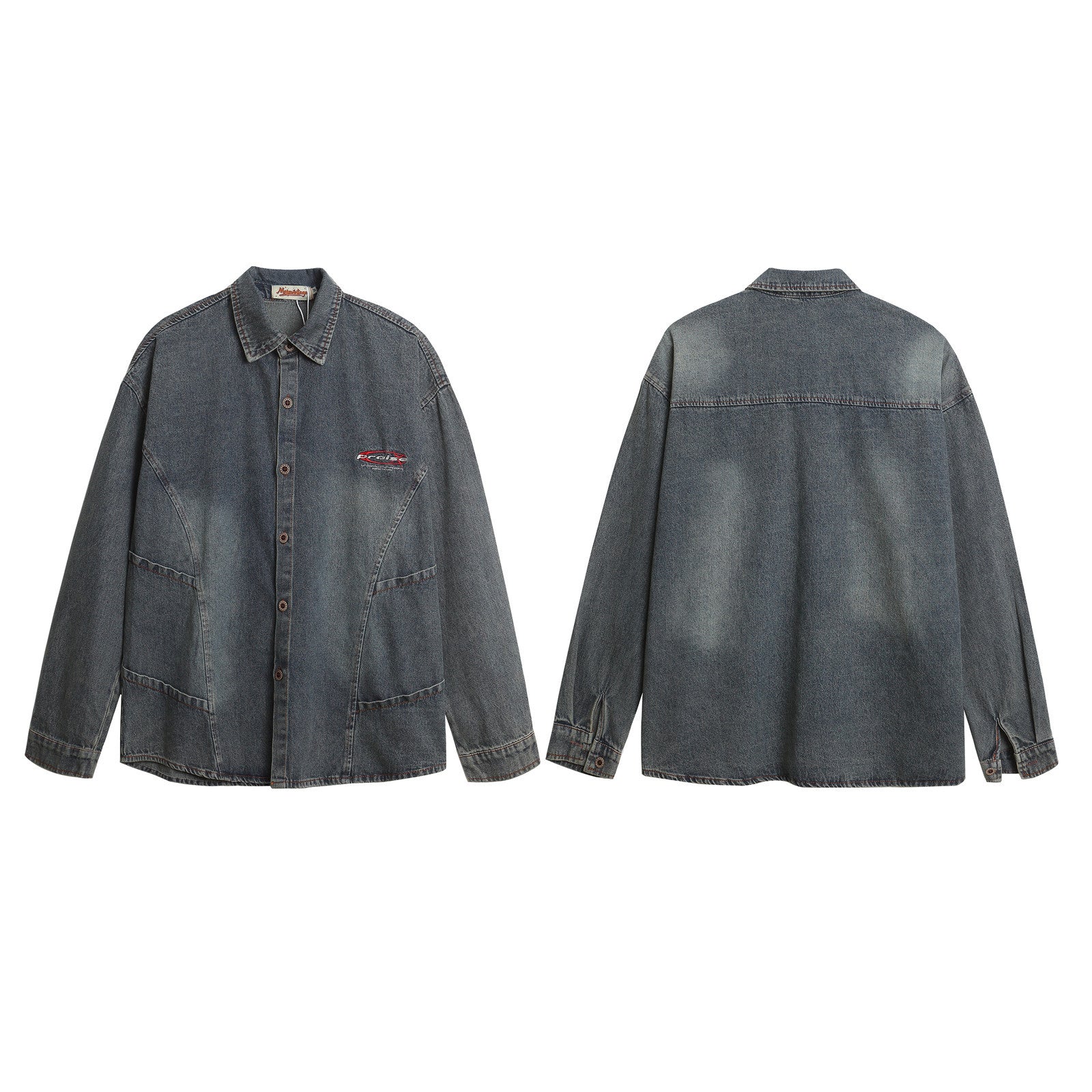 This Washed Patchwork Denim Long Sleeve Shirt is a stylish addition to your casual wardrobe, designed for both men and couples who appreciate comfort and fashion.