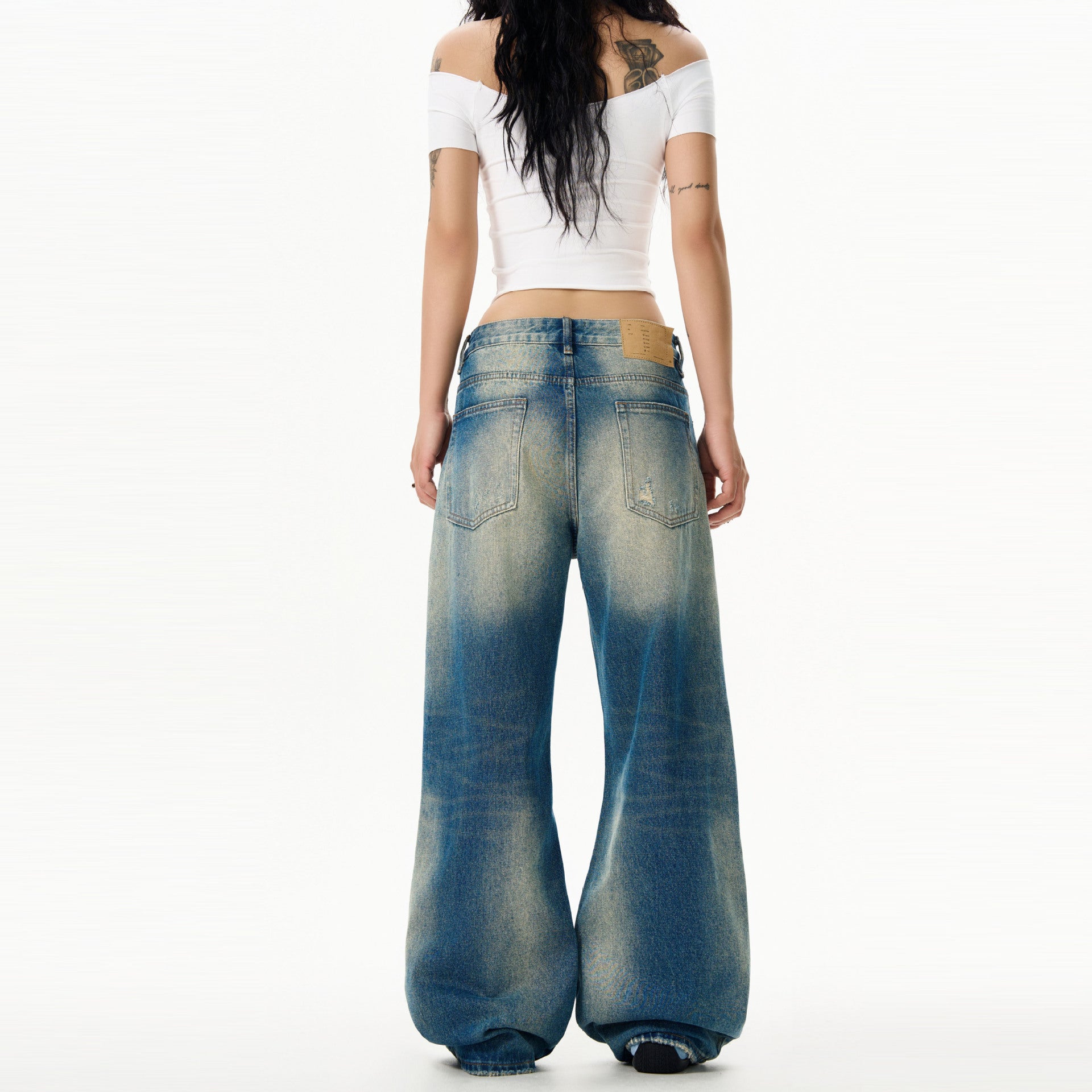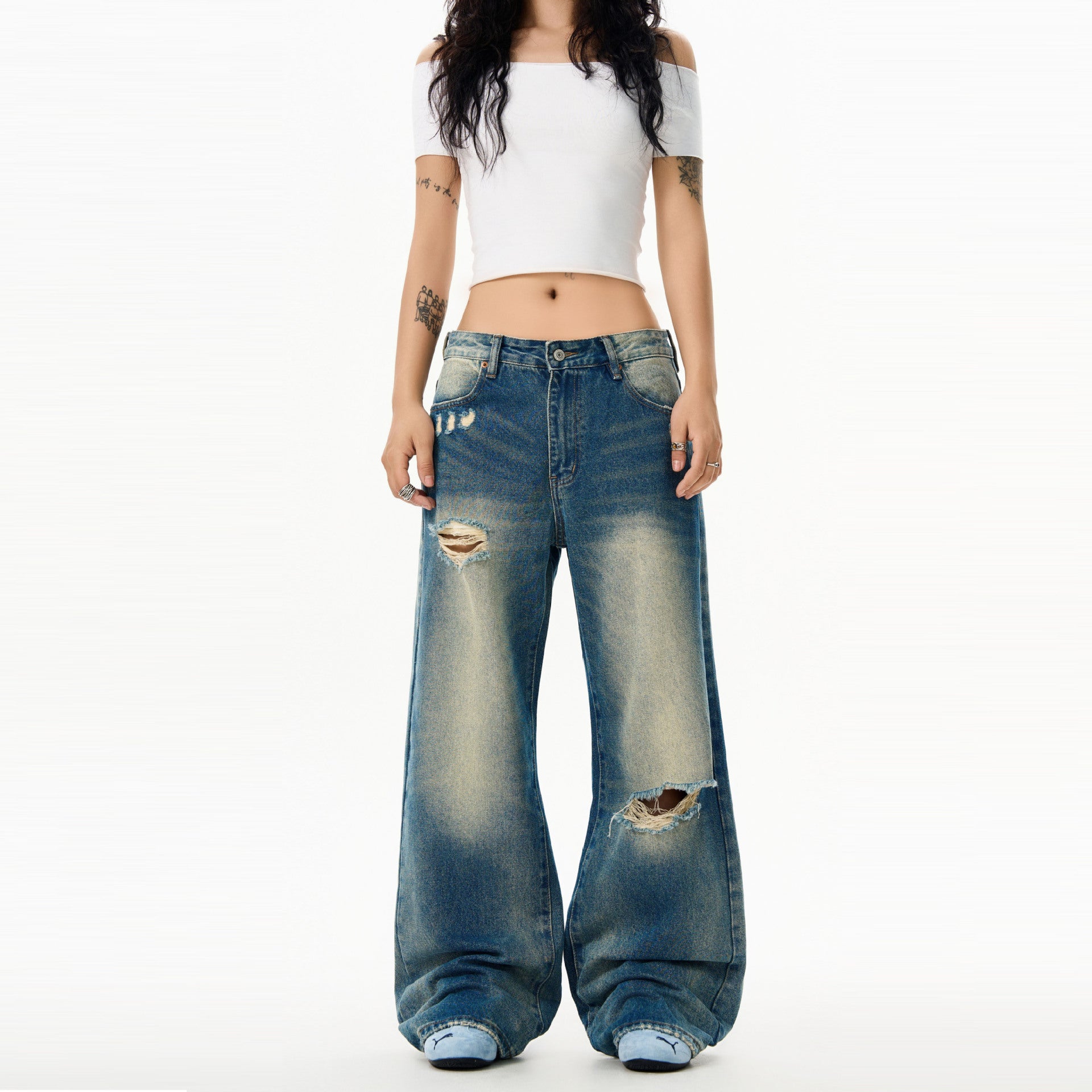 Washed Retro Blue Denim Loose Casual Straight Leg Pants