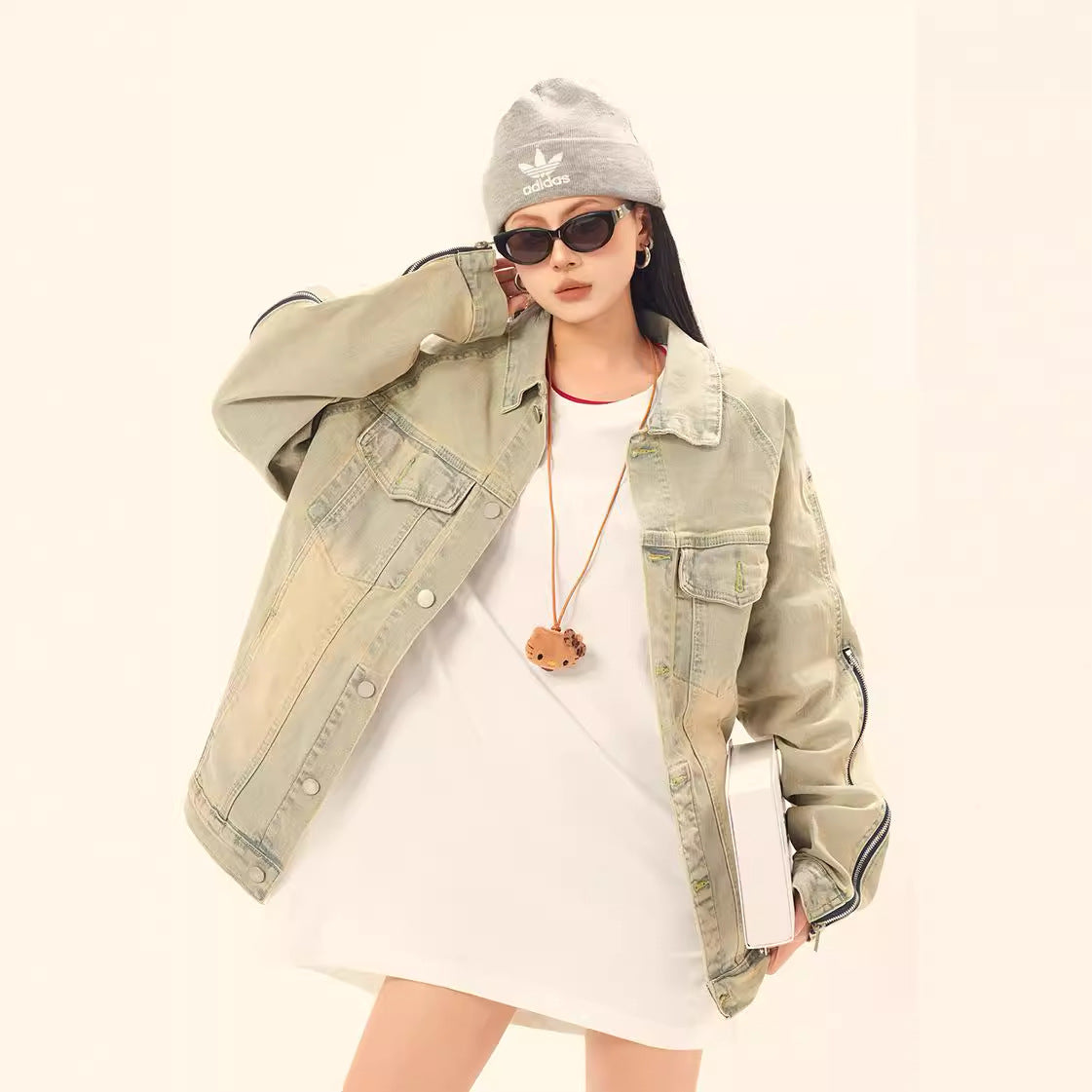 Discover the perfect blend of style and comfort with our Washed and Worn Solid Color Zipper Denim Jacket. This jacket embodies modern streetwear aesthetics while providing the durability and charm of premium Japanese denim craftsmanship.