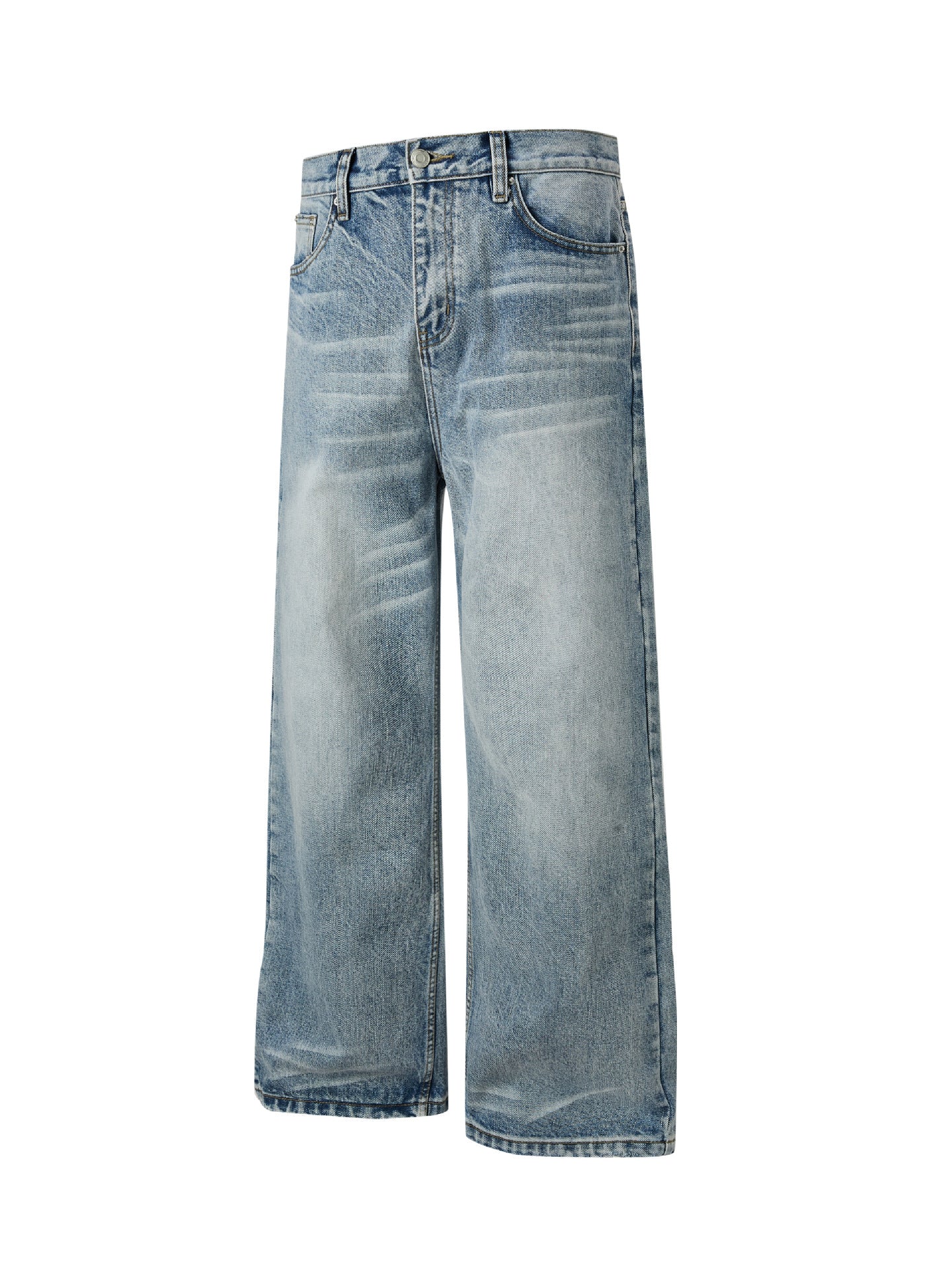Whiskers Commuting Casual Loose Straight Leg Jeans Long Pants