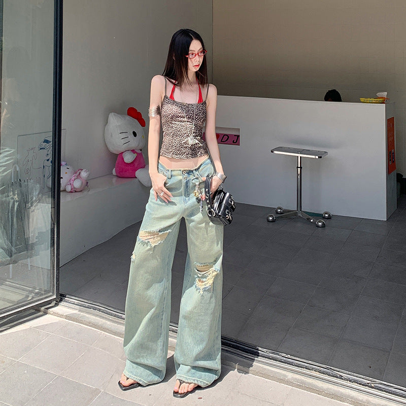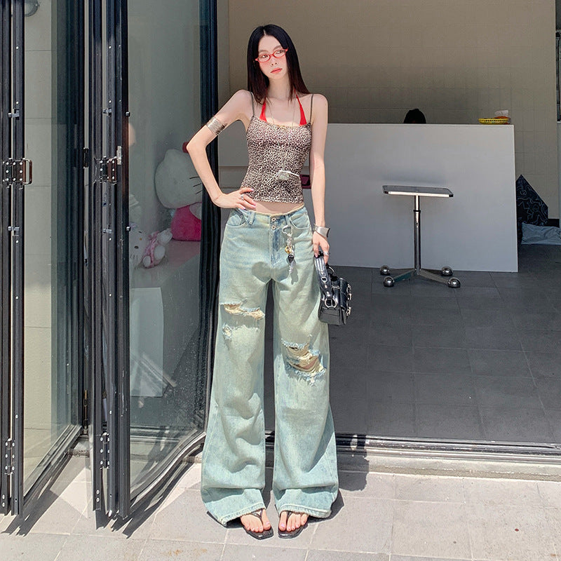 Women's Ripped High Waist Slim Narrow Leg Jeans - Vintage Design