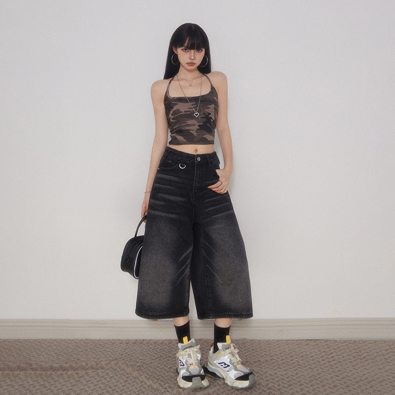 Women's Casual Loose Slimming Pear-Shaped Denim Mid-Length Trousers