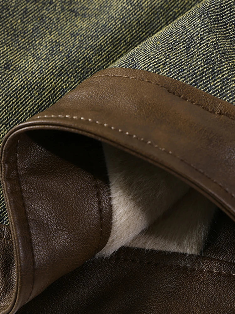 Introducing the Women's Vintage Denim Biker Jacket, a perfect fusion of modern style and classic craftsmanship. This jacket is designed for the fashion-forward woman who appreciates the art of fine clothing. With its unique PU leather patchwork detailing, it stands out in any wardrobe.