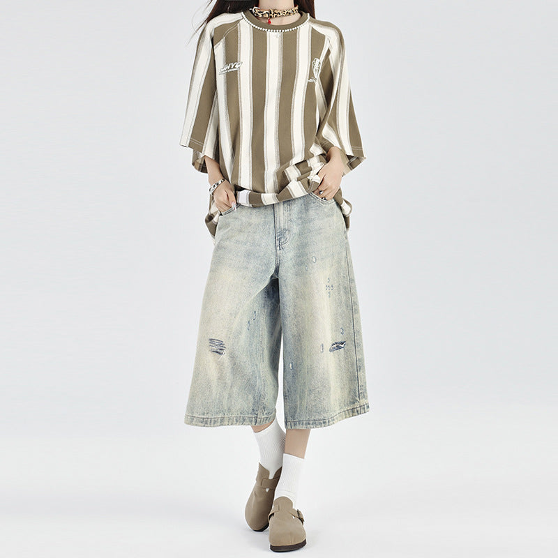 Women's Vintage Wide-Leg Ripped Denim Pants
